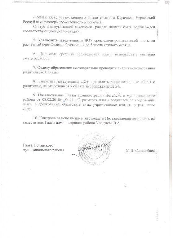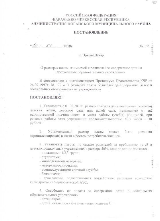 Документ об установлении размера платы, взимаемой с родителей (законных представителей)